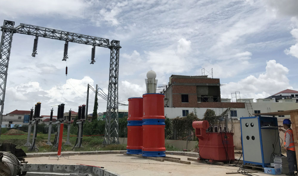 本次試驗?zāi)康氖菫楸U?15kV洪森公園變電站及115kV地下雙回路電纜回路安全運行,依據(jù)IEC 60840-2011標(biāo)準(zhǔn)對其進行交接試驗。該項目完全落成后將會把柬埔寨東線230KV線路、北線230KV線路與南線115KV線路全部連接起來,成為柬埔寨全國電網(wǎng)中重要組成部分,是柬埔寨國家電力公司(EDC)2010-2020年度重點開發(fā)項目。